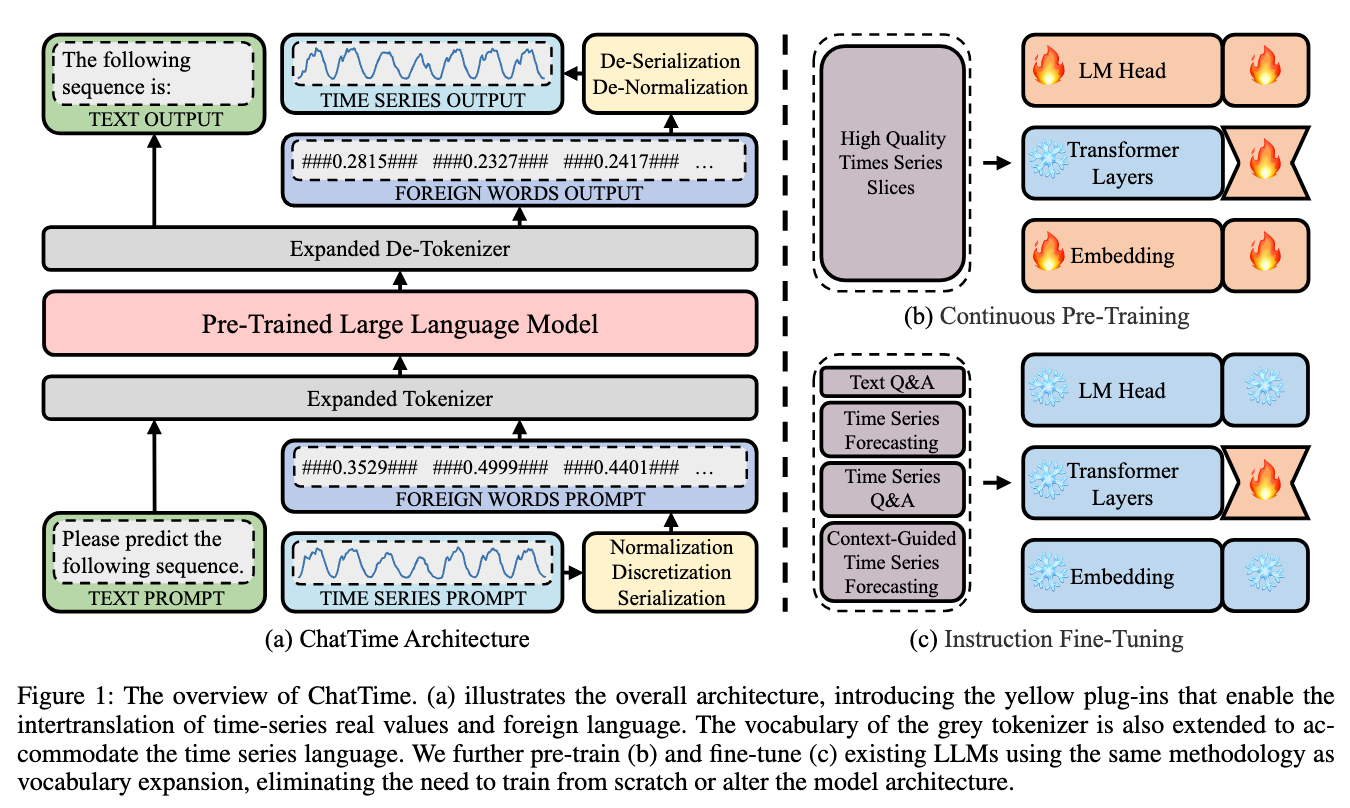 As depicted in Figure 1(b), during the continuous pre-training stage, we pre-train LLaMA-2-7B-Base on ChengsenWang/ChatTime-1-Pretrain-1M, yielding ChengsenWang/ChatTime-1-7B-Base.