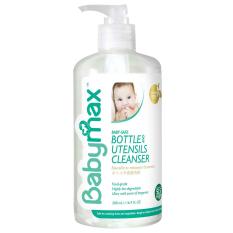 A white bottle with a blue label containing a cleaning solution is displayed on a white background. Below the bottle, there is a smaller bottle with a blue label and a green nozzle. The smaller bottle is also white.