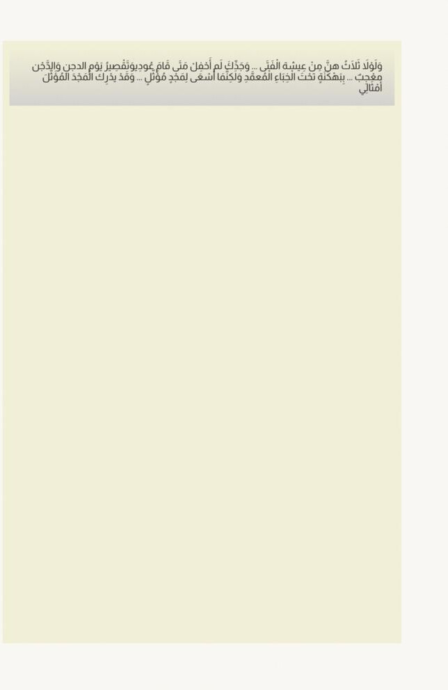 ูุงุนูุง ุฃููู: ุญูููุซู ููุง ุดูููููุฉู ููููุง ุฎููููู ููุชูููุฉู ุจูููุฌููู ุณูููุงุกู ููุญูุงุฌูุฉู ุฃูู