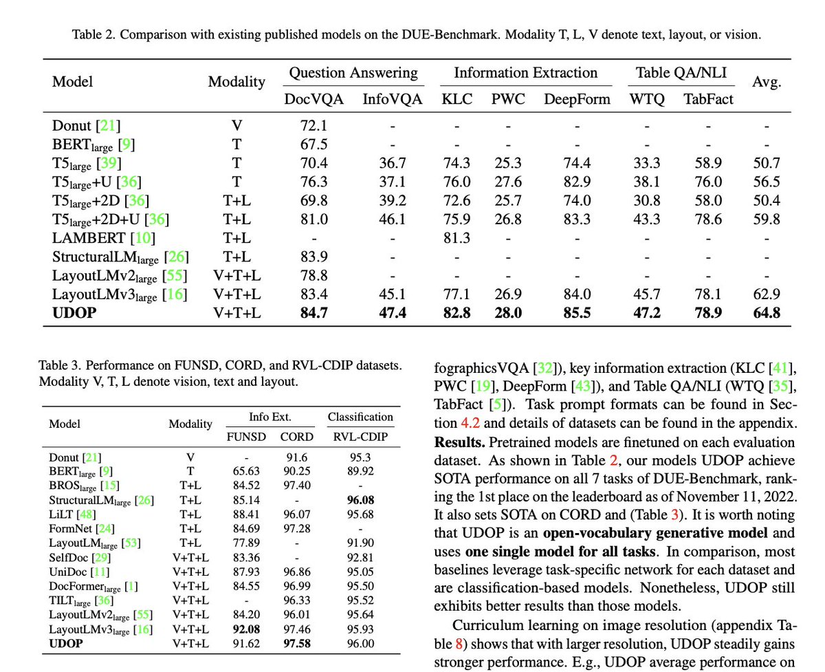 Overall, the model performs very well on document understanding benchmark (DUE) and also information extraction (FUNSD, CORD) and classification (RVL-CDIP) for vision, text, layout modalities 👇